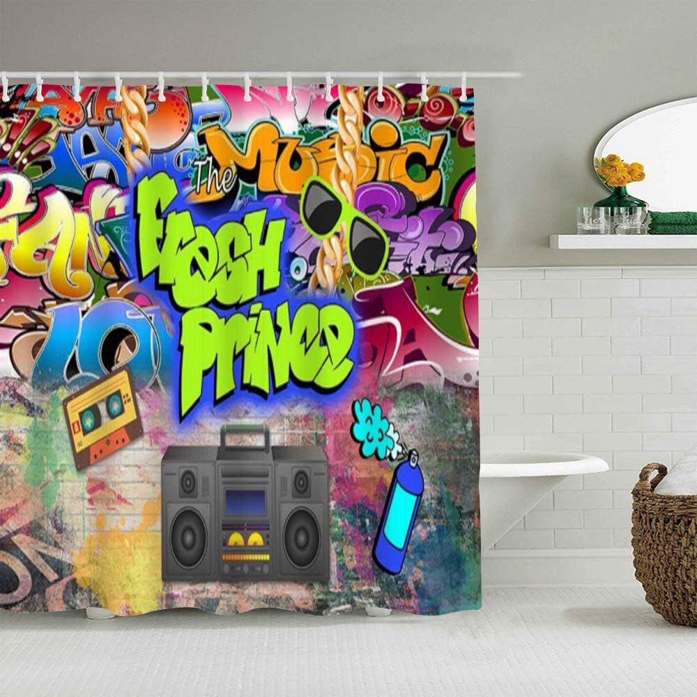 Amazon Com Allmill Shower Curtain The Fresh Prince Banner Photo Studio Background Graffiti Brick Wall Hip Hop Vintage Disco Waterproof Bath Curtains Hooks Included 72 X 72 Inches Bathroom Decorative Ideas Home Red Table Talk Lets Talk About